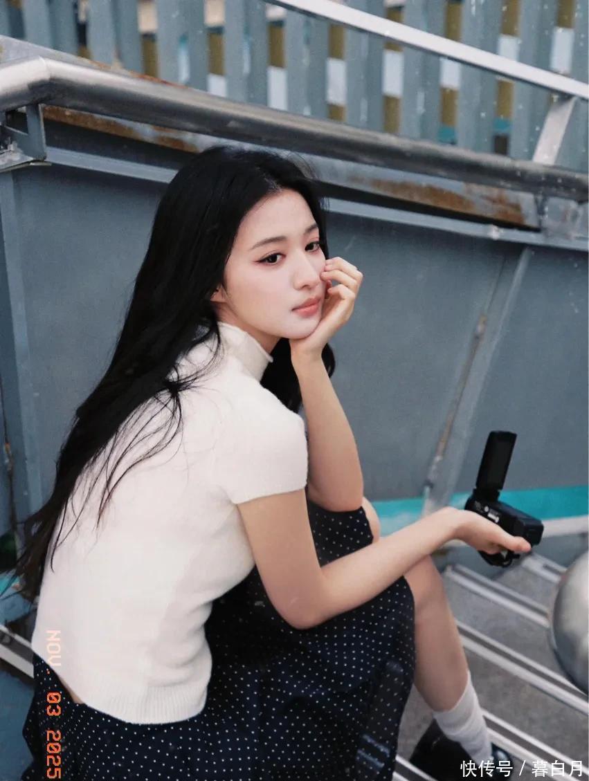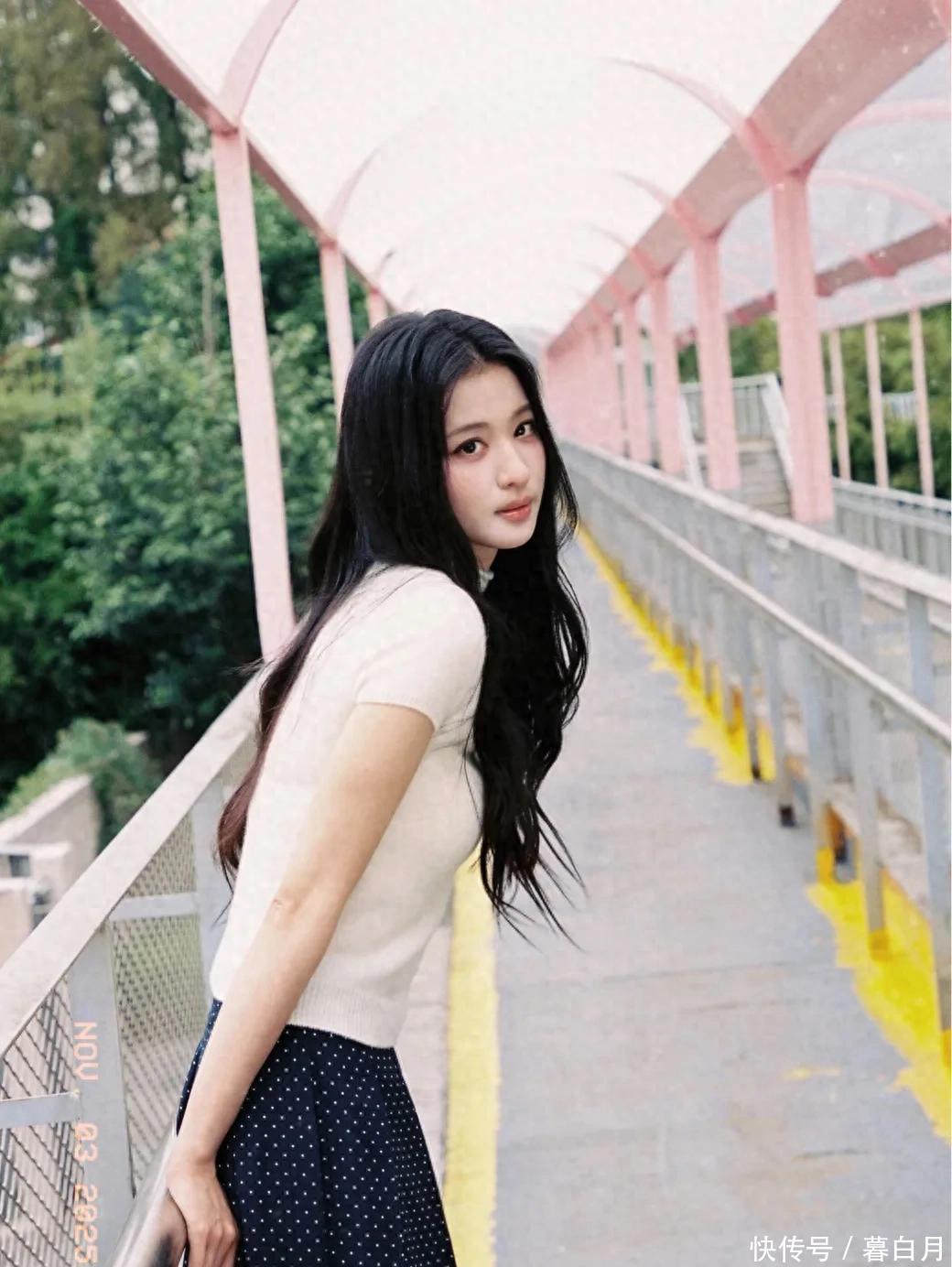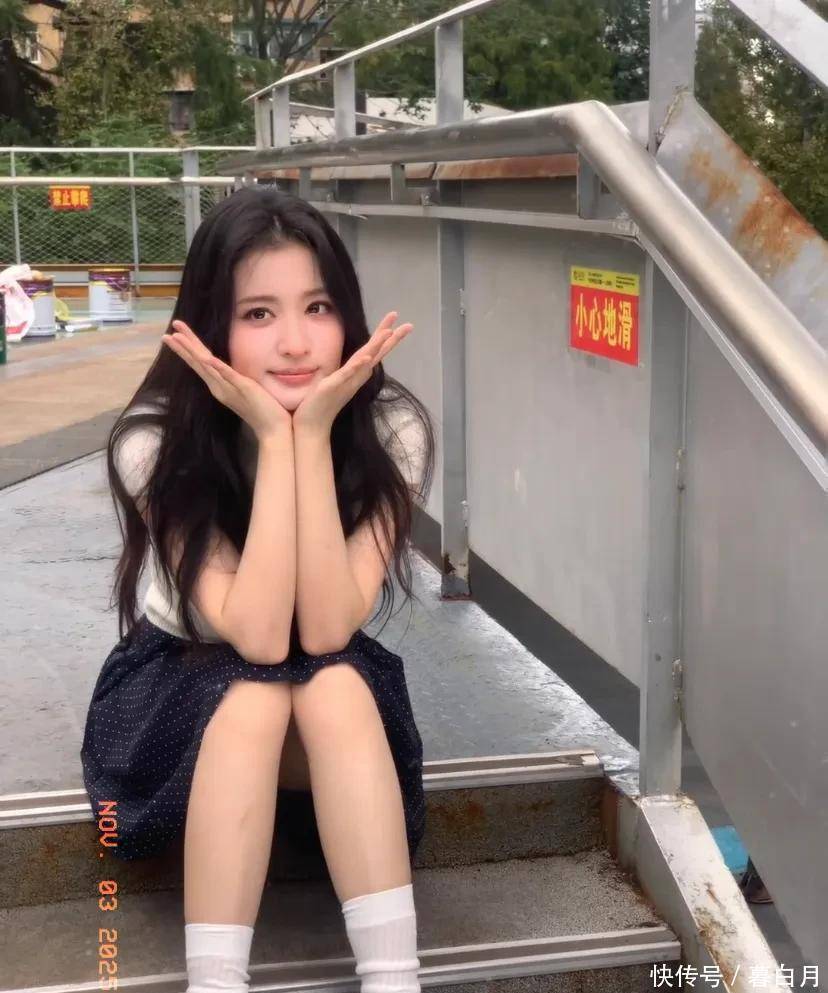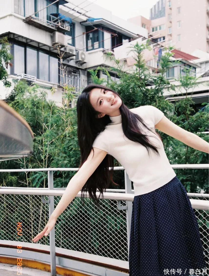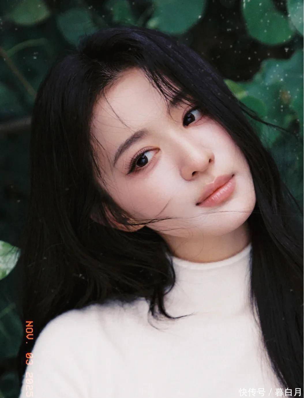 再说说她的五官,属于那种越看越好看的“耐看型”。她眼睛又大又亮,笑起来弯弯的,就像月牙一样,透着一股天然的娇憨。鼻梁挺直,嘴唇粉嫩又饱满,整体看起来精致又没有攻击性,让人忍不住就想亲近。