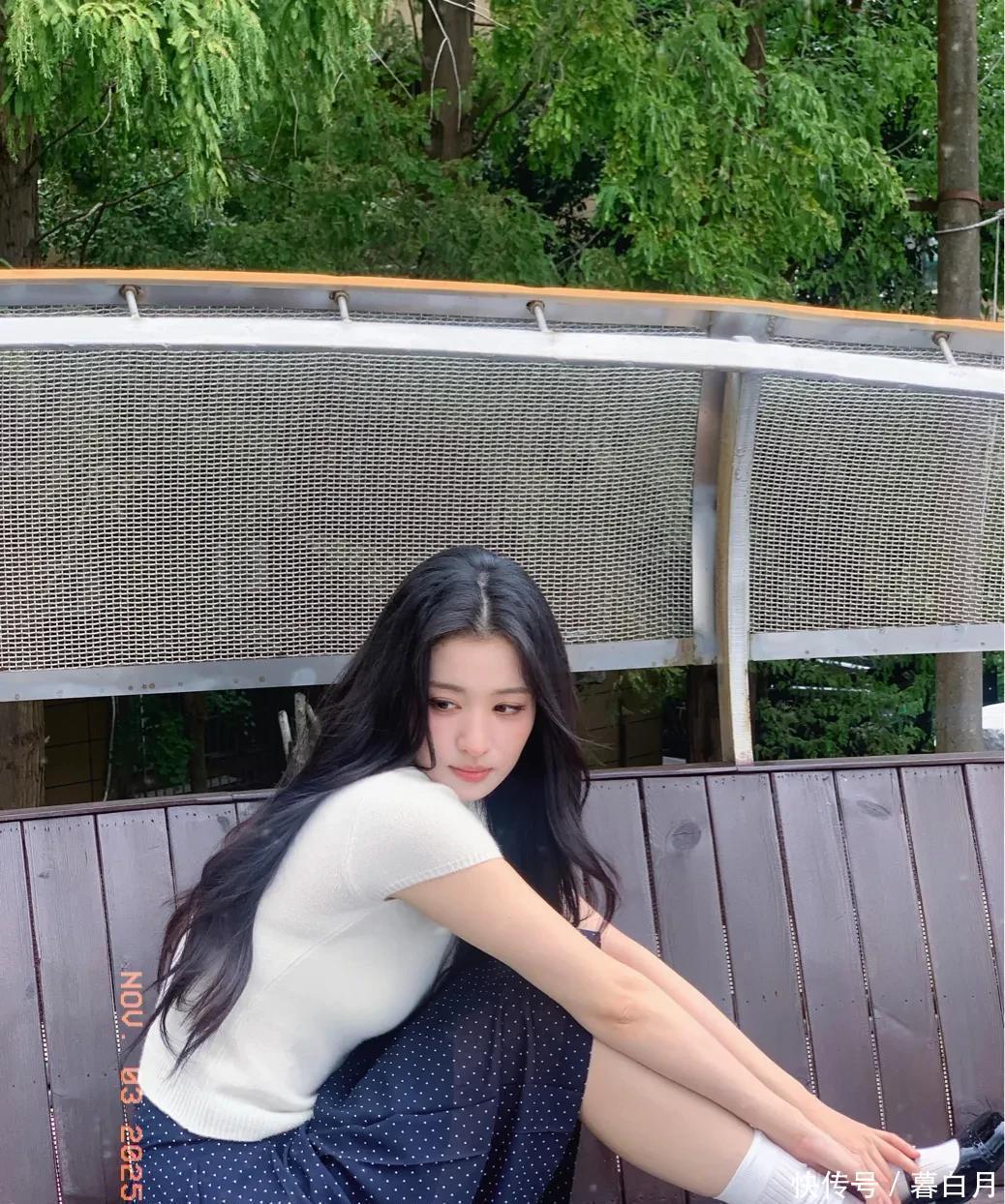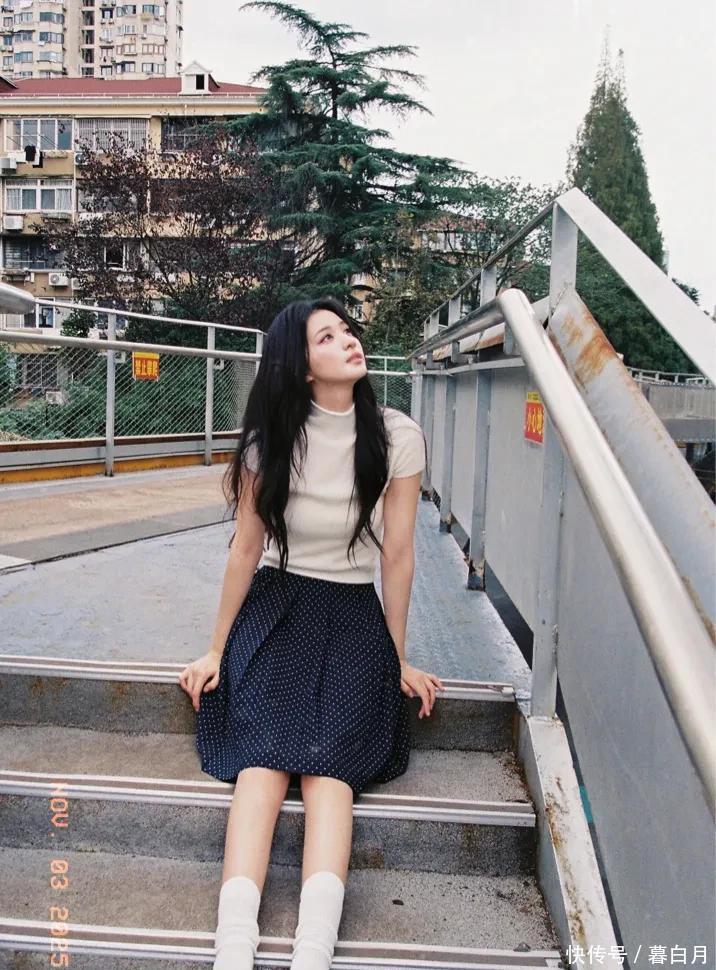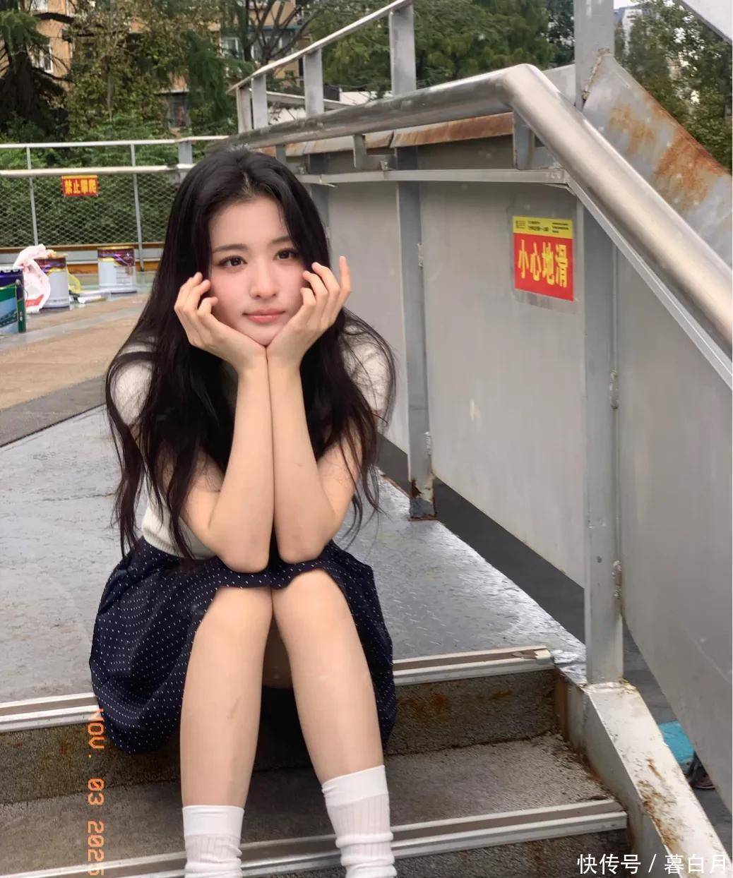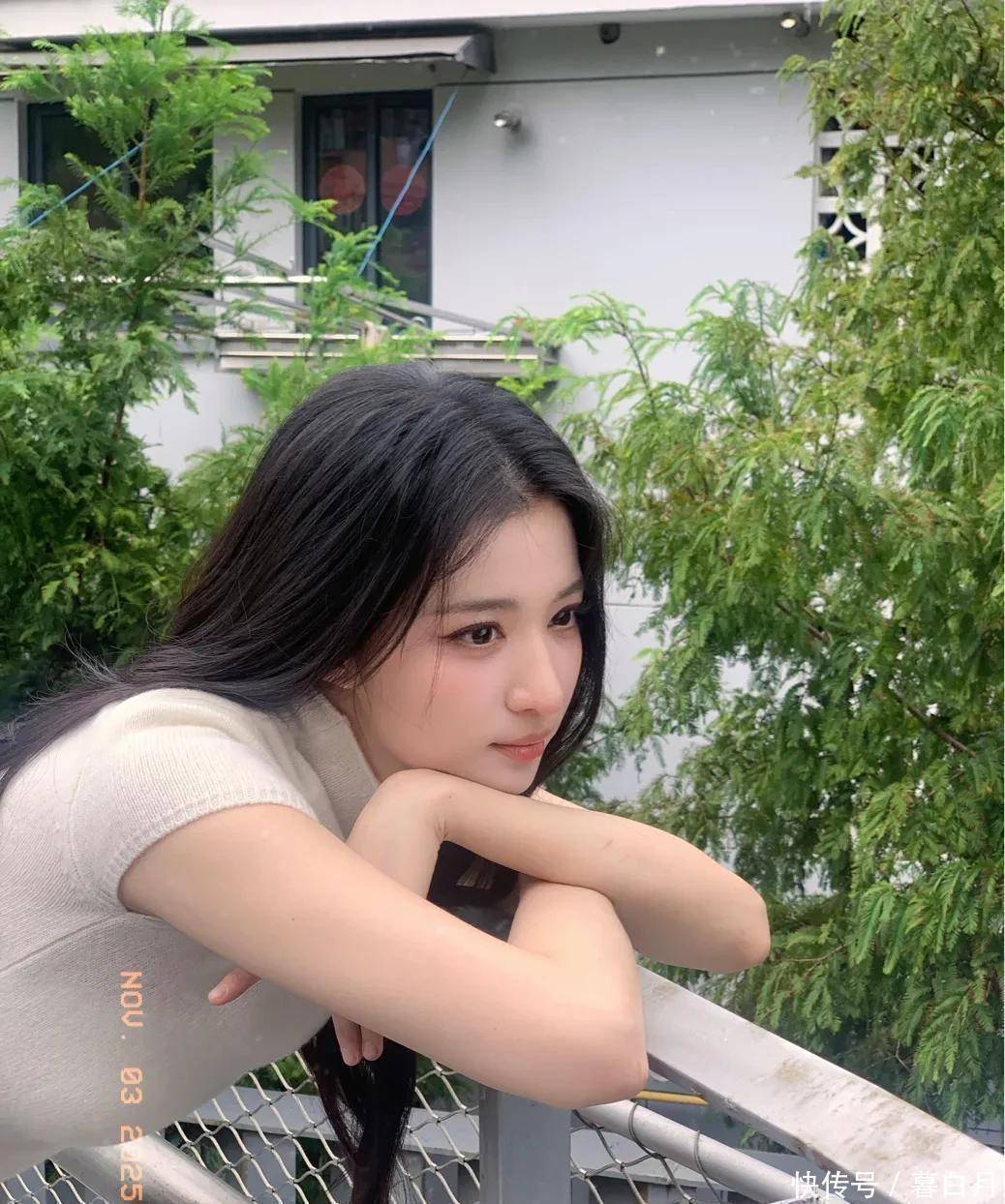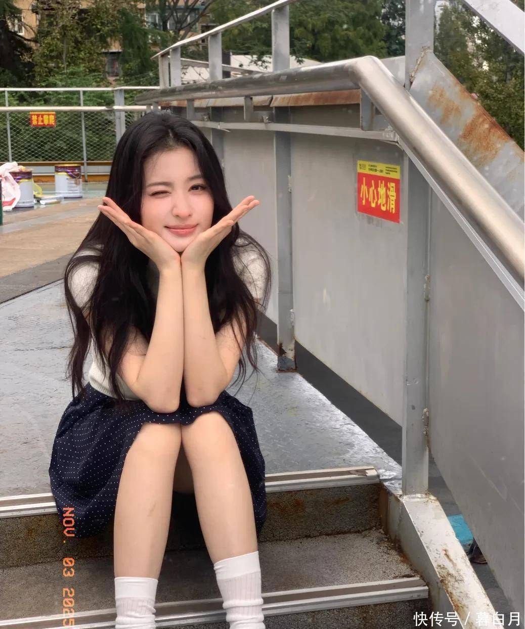再说说她的五官,属于那种越看越好看的“耐看型”。她眼睛又大又亮,笑起来弯弯的,就像月牙一样,透着一股天然的娇憨。鼻梁挺直,嘴唇粉嫩又饱满,整体看起来精致又没有攻击性,让人忍不住就想亲近。